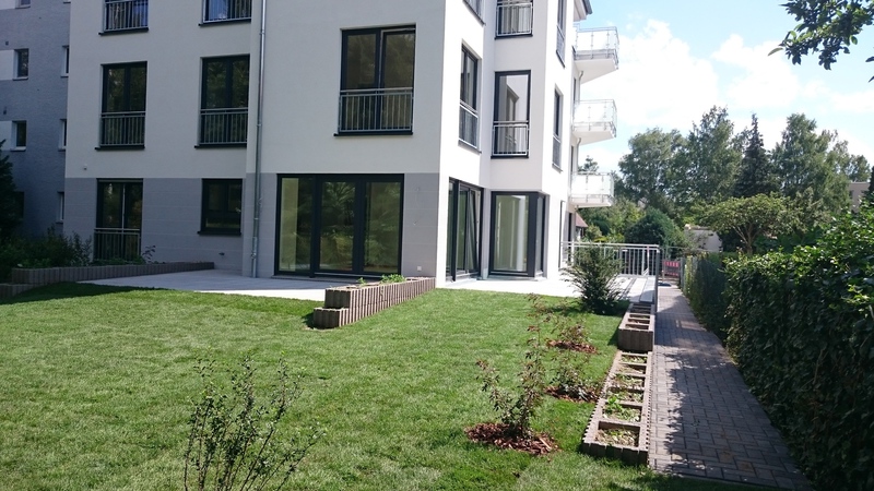 Den beiden Erdgeschosswohnungen wurde jeweils ein großer Gartenanteil mit Terrasse zur alleinigen Sondernutzung zugewiesen. Die Gärten sind abgewandt von den großzügigen Balkonen der darüber gelegenen Wohnungen, dadurch bieten sie viel Ruhe und Privatheit. Ungestört kann man sich so an seiner grünen Oase erfreuen.